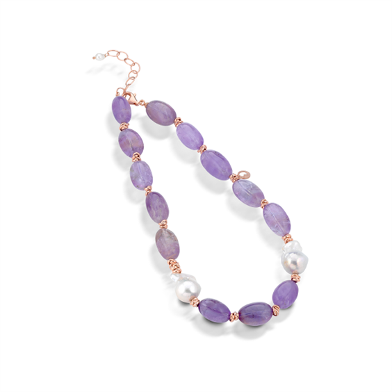 Collana in ametrino, perle e argento 925 rosa – 45cm