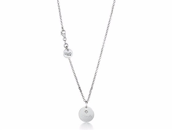 Ciondolo su catena, tondo con zircone centrale. Catenella finale