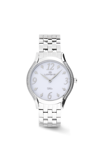 La collezione Diva Braclet incarna il perfetto equilibrio tra stile e raffinatezza, grazie al suo design sofisticato e ai materiali di alta qualità. Il suo bracciale lucido a 5 maglie, con chiusura butterfly a doppio pulsante, avvolge il polso con leggerezza e comfort, donando un tocco di classe senza tempo. La cassa in acciaio 316L da 34 mm racchiude un quadrante elegante, disponibile in nuove varianti classiche, impreziosite da ore arabe e indici per una leggibilità impeccabile. Il vetro minerale protegge il quadrante, mentre la corona e il fondello a pressione garantiscono un design pulito e armonioso. Al cuore di ogni orologio batte il movimento Miyota 2025 a due sfere, sinonimo di affidabilità e precisione. Con una impermeabilità fino a 50 metri, è perfetto per accompagnarti in ogni momento della giornata. Ogni orologio della collezione è custodito nello splendido astuccio Diva, un elegante cofanetto bianco laccato che può trasformarsi in un prezioso portagioie.