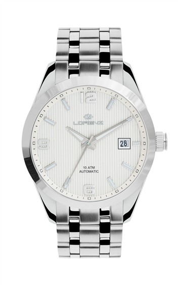 Orologio da uomo solo tempo. Cassa rotonda in acciaio diametro 40 mm. con fondello a vite e vetro minerale. Cinturino in acciaio e chiusura sportiva di sicurezza. Movimento automatico Miyota 8215. Resistente all'acqua fino a 10 atmosfere.