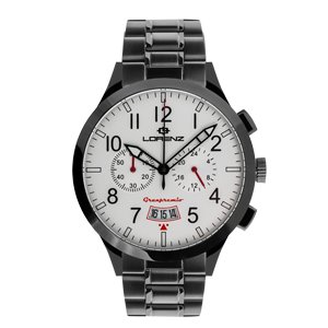 Cassa in acciaio 316L di diametro 42 mm, finitura IP color canna di fucile, logo speciale e astuccio Helmet Box. Monta movimento è Miyota OS21 cronografo quarzo bicompax al 3 indicatore delle 24 ore, al 9 contaminuti cronografici, secondi cronografici al centro, al 6 finestrella datario, impermeabile 5 atmosfere con vetro minerale. Bracciale con chiusura deployante e libretto di sicura.