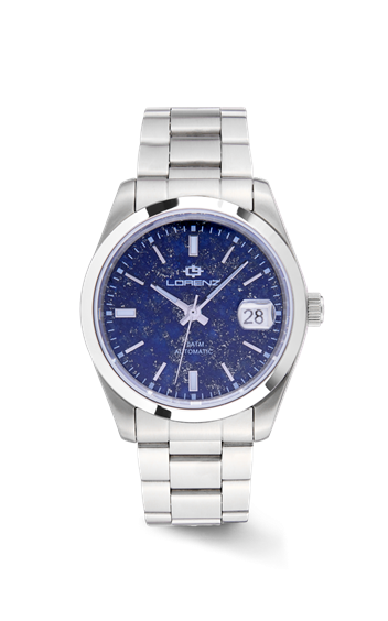Lorenz Ginevra King Gemstone Lapislazzuli 030235LL – Orologio automatico elegante con quadrante in pietra naturale Specifiche Tecniche Marca: Lorenz Modello: Ginevra King Gemstone Lapislazzuli 030235LL Genere: Uomo Diametro cassa: 39 mm Spessore cassa: 12 mm Larghezza ansa: 20 mm Materiale cassa: Acciaio inossidabile 316L Materiale lunetta: Acciaio lucido, fissa Vetro: Zaffiro con lente ciclopica Quadrante: Lapislazzuli naturale con indici applicati Movimento: Automatico Seiko NH35 (Japan Made) Funzioni: Tre sfere, datario a ore 3 Fondello: A vite Corona: A vite Cinturino: Bracciale in acciaio inossidabile Chiusura: Deployante con meccanismo di sicurezza Impermeabilità: 10 ATM (100 metri) Stile: Classico elegante Confezione: Scatola originale Lorenz Il Lorenz Ginevra King Gemstone Lapislazzuli 030235LL è un orologio che unisce l'eleganza del design classico alla bellezza unica della pietra naturale, offrendo un tocco distintivo e raffinato per ogni occasione.