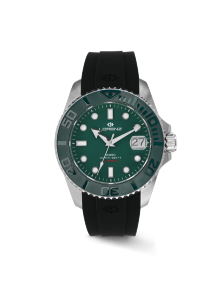 Il Doppia Iniezione è uno dei modelli di maggior successo delle collezioni Diver Lorenz. Nato per offrire un modello submarine con cinturino in gomma, questa linea è stata ulteriormente migliorata per garantire prestazioni elevate e un design raffinato. Il nuovo DI300 presenta un quadrante a due livelli e una cassa in acciaio 316L con diametro di 42 mm. L'impermeabilità è stata aumentata fino a 300 metri, rendendolo un vero orologio subacqueo professionale. La lunetta in ceramica lucida e satinata sfoggia un nuovo disegno con numeri in rilievo, mentre la corona a vite è stata rinnovata con scanalature per una presa migliore. Il fondello a vite è personalizzato con il logo DI-300 e il vetro zaffiro piatto con lente garantisce resistenza e visibilità ottimale. L'orologio è animato dal movimento automatico giapponese Seiko NH35, sinonimo di affidabilità e precisione. Il nuovo cinturino in gomma accorciabile, dotato di fibbia déployante con sicurezza, assicura comfort e praticità. Perfetto per gli appassionati di immersioni e per chi ama uno stile elegante e sportivo, il DI300 unisce performance tecniche avanzate a un’estetica di grande fascino.