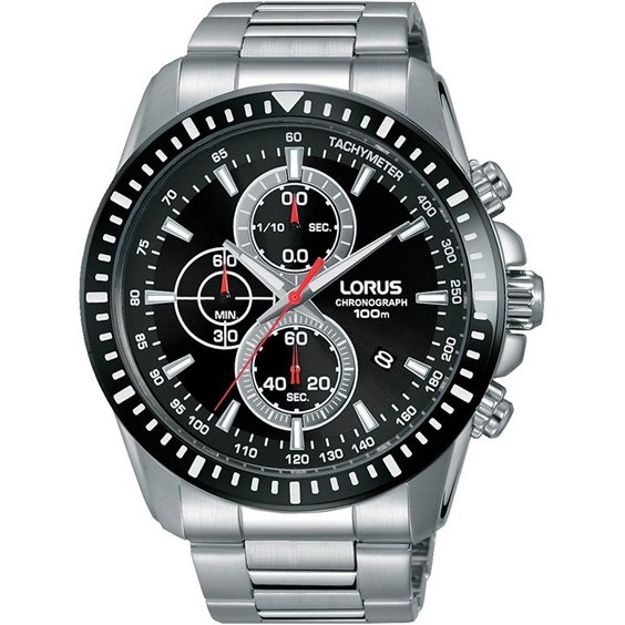 Lorus RM345DX9 è un orologio per Uomo con cronografo della collezione Orologi Lorus Sports: Movimento Cronografo al quarzo. Cassa in acciaio 45 mm. Quadrante Nero. Cronografo 1/10 di secondo. Datario. Tre sfere. Vetro minerale. Fondello a vite. Bracciale in acciaio. Chiusura con pulsanti di sicurezza. Resistente all'acqua 100 metri. Astuccio e Garanzia Ufficiale Lorus 24 mesi.