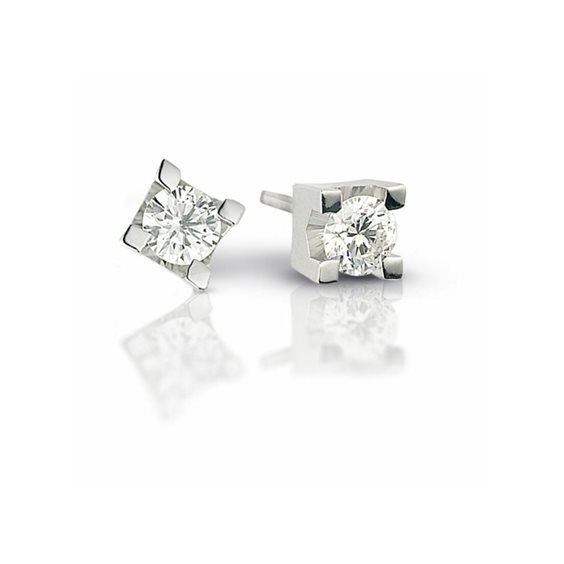 Orecchini punto luce in oro bianco 18 carati ideati e realizzati da Lucciole, gli orecchini sono impreziositi da due diamanti di carati totali 0,18 colore G purezza SI taglio brillante rotondo, peso 1,30 grammi, chiusura a farfallina.