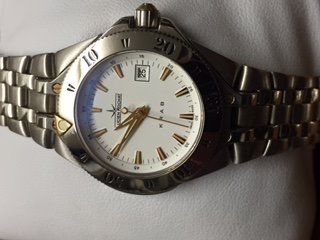 Bellissimo orologio sportivo-elegante, cavaliere e viti in oro 18Kt, vetro zafforo, bracciale con maglie morbidissime, impermeabile 10 atm, movimento swiss made.