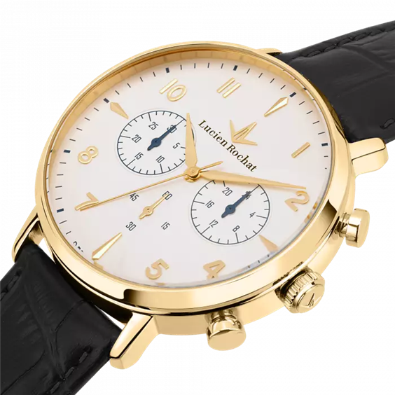 Orologio cronografo da uomo Lucien Rochat. Cassa silver Gold in acciaio, cinturino in vera pelle stampa coccodrillo. Collezione Garçon 2022/2023