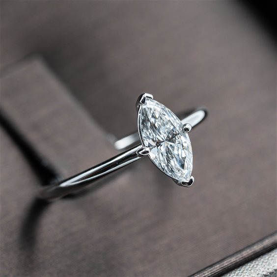 Anello in oro Bianco 18kt con Diamante Naturale taglio Marquise ct 0.72. Diamante certificato GIA