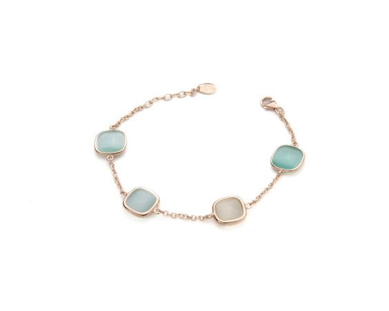 Bracciale in argento 925 rosè con quarzi idrotermali nella tonalità del verde Tiffany.