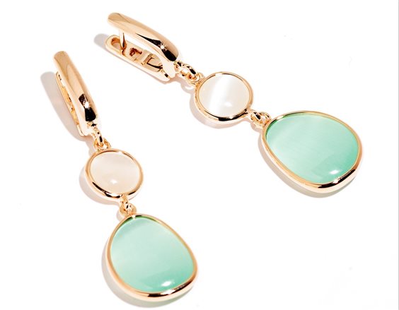 Orecchini in Argento 925 , placcato in Oro rosè con 2 quarzi idrotermali ghiaccio e verde acqua.