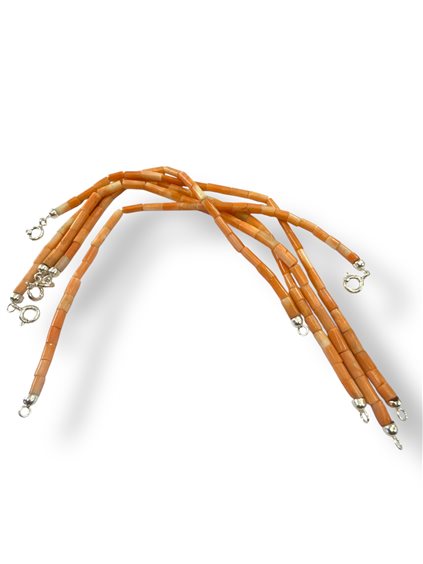 Bracciale in corallo rosa, lavorazione a cannette. Chiusura in argento 925 Lunghezza bracciale 18,19,20cm. Le foto rappresentate sono indicative gli articoli naturali lavorati a mano possono avere delle lievi differenze per forma e colore.