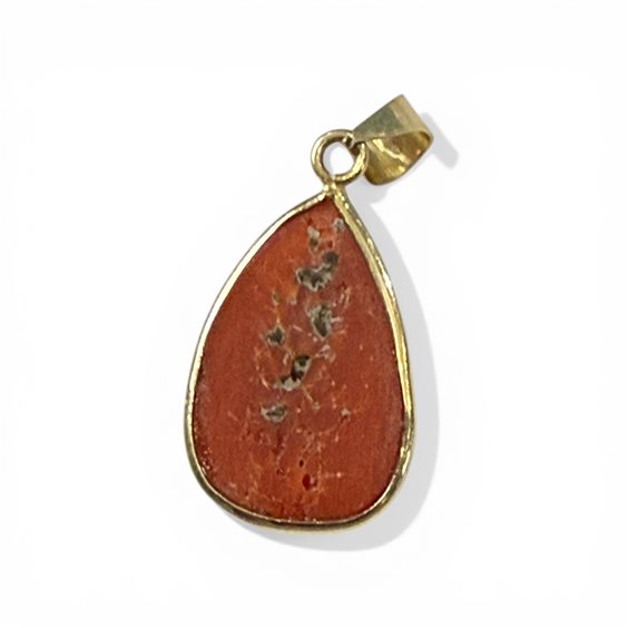 Elegante cammeo in corallo naturale inciso a mano con delicati motivi decorativi raffigurante volto di donna, , incorniciato da una raffinata montatura in oro giallo 18 kt. Un gioiello unico, espressione di artigianalità e stile senza tempo.
