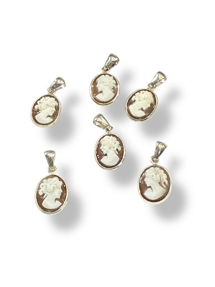 Ciondolo,in argento Sterling 925, montatura a filo, cammeo di prima scelta su conchiglia sardonica con incisione testa di donna interamente fatta a mano, dimensione cammeo 10/12mm. Piccole eventuali imperfezioni dovute alla realizzazione a mano non sono considerate difetto ma una peculiarità dell’hand made.