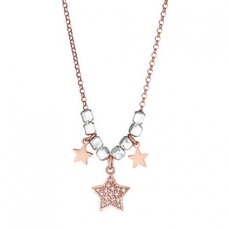 collana argento rosè con stella e zirconi bianchi, lunghezza cm 43