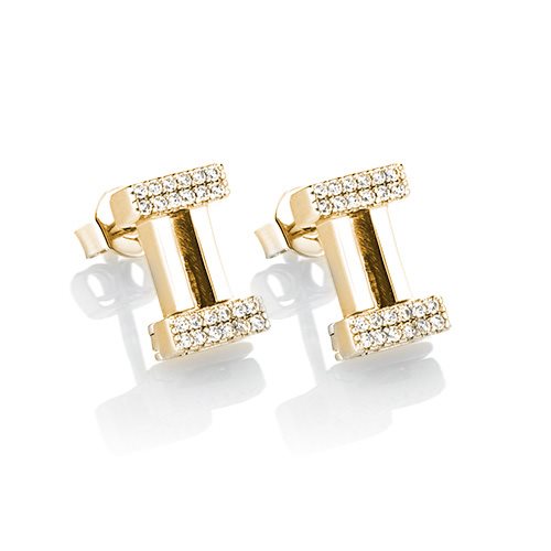 Base orecchini componibili in argento 925 e zaffiri bianchi, con binario in cui poter aggiungere un elemento singolo.
