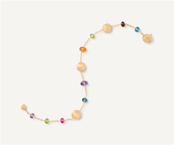 Una magnifica combinazione di gemme di diverso colore si alterna a sfere d'oro giallo 18kt, dalla superficie irregolare, finemente incise a mano con l'antica tecnica del bulino millerighe. Divertente e brioso, questo bracciale è perfetto per completare il look e dare un tocco di colore a qualsiasi outfit. Lunghezza: 18 cm, Oro giallo, Round mix of amethyst, peridot, yellow quartz, garnet, london topaz, pink tourmaline, green tourmaline, faceted 4 - 6 mm