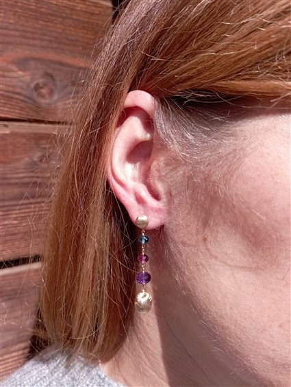 Marco Bicego Africa Color Orecchini in oro giallo 750/1000 inciso a mano con pietre semipreziose multicolore ( Lunghezza 70 mm. )