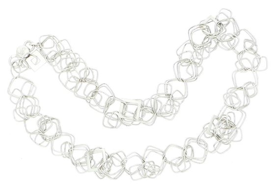Catena in argento 925/°°° composta da anelli di forma quadra ed elementi in lastra - lunghezza cm 45 - peso g 28.90