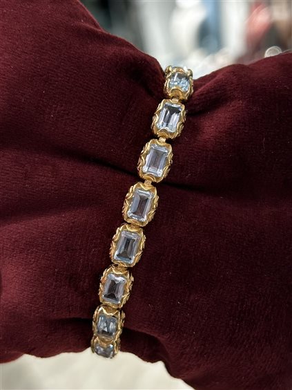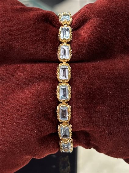 BRACCIALE TENNIS SMALL IN ARGENTO INTAGLIATO PLACCATO ORO GIALLO CON 17 PIETRE TAGLIO SMERALDO (8*6) TOPAZIO AZZURRO