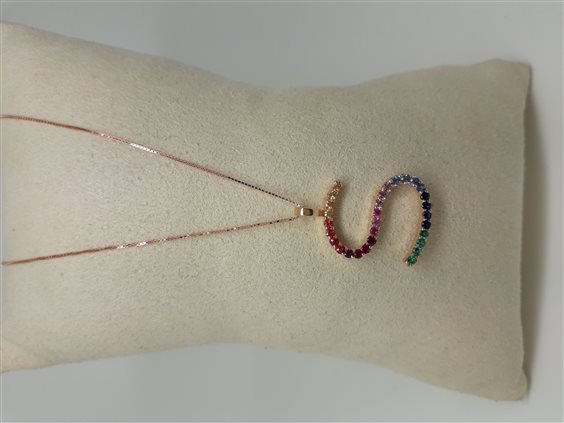 GIROCOLLO DA DONNA MAGLIA VENEZIANA IN ORO ROSA 18 KT,CON PENDENTE A FORMA DI S CON ZAFFIRI MULTICOLOR.