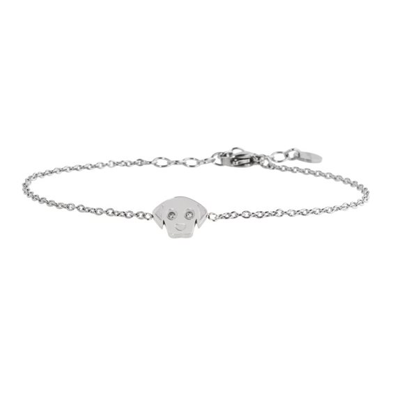 Bracciale in acciaio cane con cristalli, lunghezza 16 cm con estensione di 3 cm Collezione: Time To