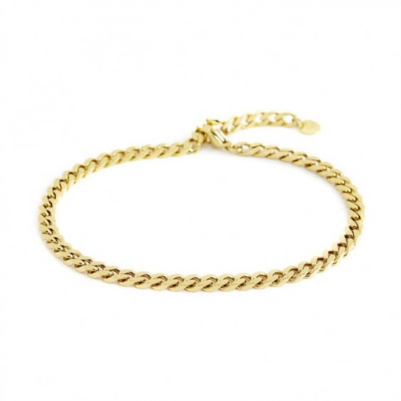 Cavigliera in acciaio con oro pvd con catena grumetta, con logo Marlù. Lunghezza 25,8 cm.