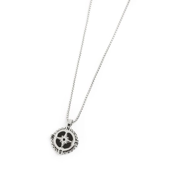 Collana in acciaio catena box chain con rosa dei venti. Lunghezza 45 +5 cm regolabile Collezione : Man Class 24 Materiale : Acciaio, legno, onice