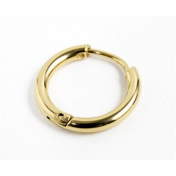 Mono orecchino in acciaio con PVD oro, cerchio con diametro esterno 16 mm, con spessore 1.90mm, chiusura a pressione. Logo Marlù laserato