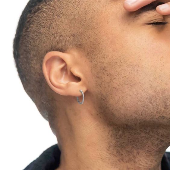 Mono orecchino in acciaio a cerchio 2,4 cm di diametro con cubic zirconia bianchi 1,70 mm. Chiusura a pressione. Sul lato logo Marlù laserato. Materiali: acciaio, cubic zirconia