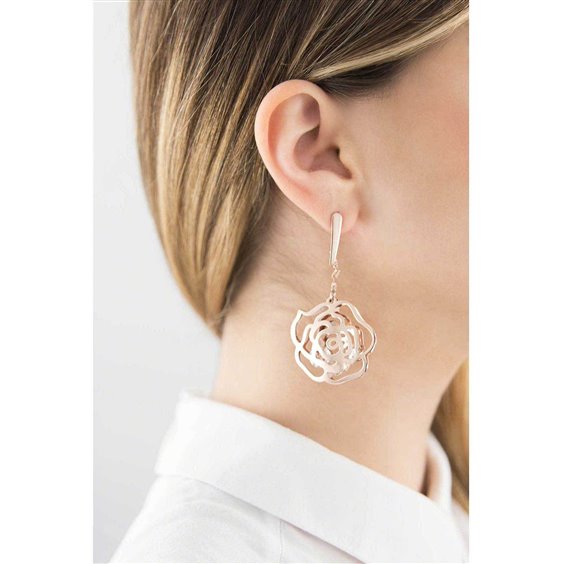 ioiello Marlù, Acciaio Anallergico, Collezione: Chic 3, Orecchini Rosa Grandi Acciaio Rose' E Cristalli All'Interno.