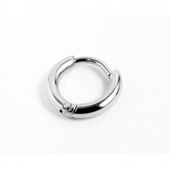 Mono orecchino in acciaio, cerchio con diametro esterno 11 mm, con spessore 1.90 mm, chiusura a pressione. Logo Marlù laserato