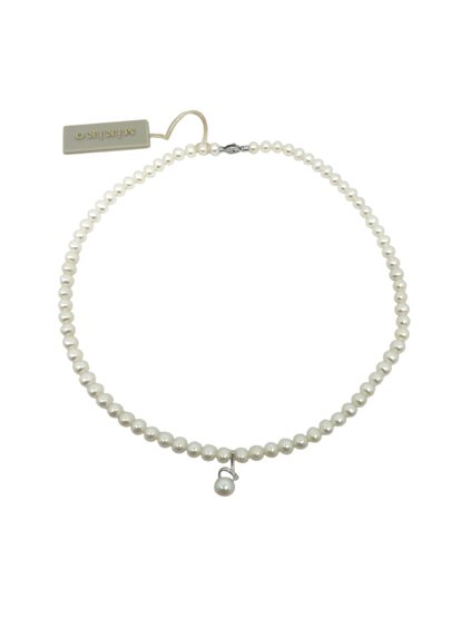 Collana di perle con ciondolo di perla e oro bianco con brillantino ct 0,005. Chiusura con moschettone in oro bianco 18 Kt.