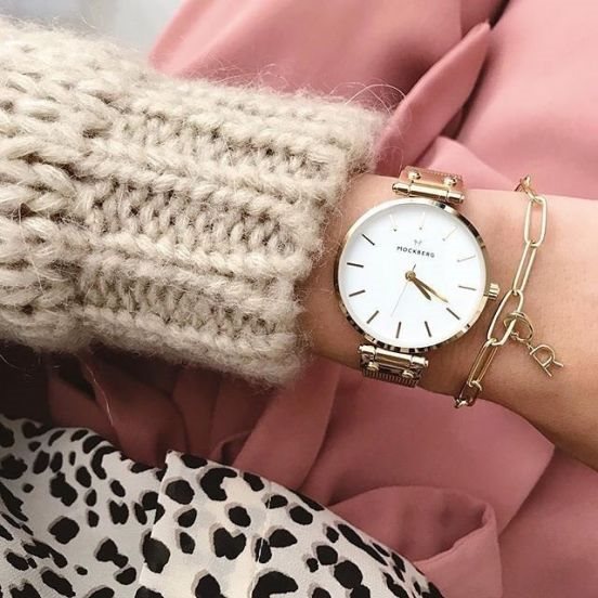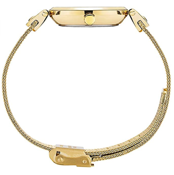 Orologio donna dorato solo tempo, al quarzo con tre sfere, bracciale maglia Milano.