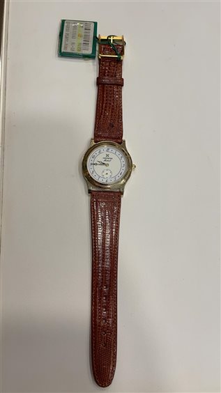 OROLOGIO MONDIA UNISEX CASSA IN ACCIAIO PLACCATO ORO GIALLO QUADRANTE FONDO BIANCO SOLO TEMPO CON PICCOLI SECONDI POSIZIONATI AL NUMERO 6, CINTURINO PELLE MARRONE CHIARO CON CHIUSURA ARDIGLIONE IN ACCIAIO PLACCATO ORO GIALLO.
