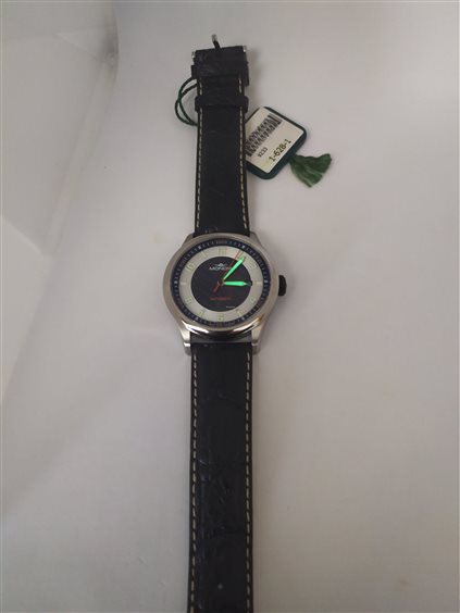 Orologio Mondia uomo automatico con cassa in acciaio e cinturino in vera pelle di coccodrillo ,fondo argento e fibra di carbonio colore blu/nero, data al numero 3.lancette fluorescenti.