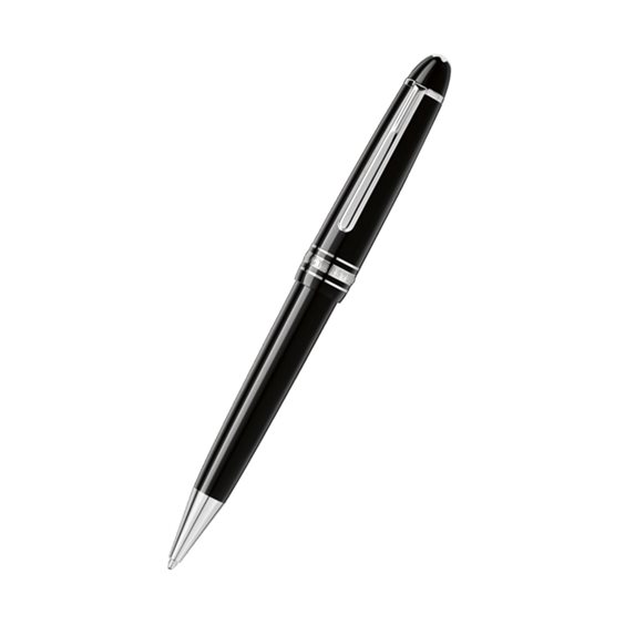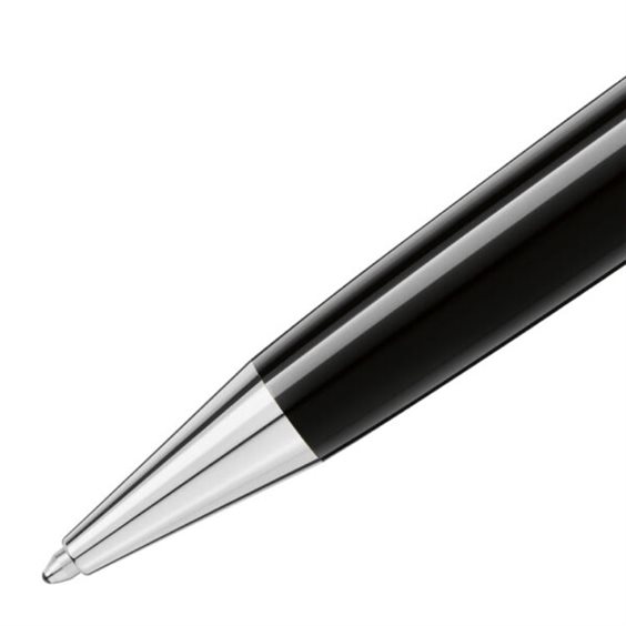 La Meisterstück Midsize in pregiata resina nera con eleganti dettagli finitura platino, sormontata dall'emblema Montblanc bianco, è un'icona di design unica nel suo genere. La sua misura corrisponde a una via di mezzo fra quelle degli strumenti da scrittura LeGrand e Classique. Penna a sfera Bariletto e cappuccio in pregiata resina nera; sul cappuccio emblema intarsiato Clip finitura platino con numero di serie individuale Refill per penne a sfera Montblanc: Mystery Black (nero), Pacific Blue (blu), Nightfire Red (rosso), Fortune Green (verde), Amethyst Purple (viola), Barbados Blue (azzurro), India Orange (arancione)