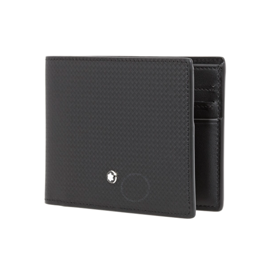 Con il suo audace colore nero, il mix di pelle liscia all'interno e con stampa effetto fibra di carbonio all'esterno, il portafoglio è il compagno ideale dei giovani esploratori urbani per custodire le loro carte di credito e i contanti. Ha 6 aperture per carte di credito, 2 scomparti per banconote e 2 tasche extra. La tecnologia Montblanc Shield (fodera che blocca le RFID) completa il look.