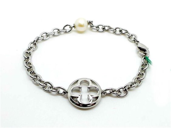 Gioiello Morellato, Collezione:DUCALE, Bracciale in acciaio con PERLA BIANCA coltivata. Lunghezza 190 mm.