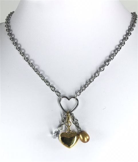 GIROCOLLO CON CUORE STILIZZATO PIÙ PERLA E CUORE A CIONDOLO RIMOVIBILE