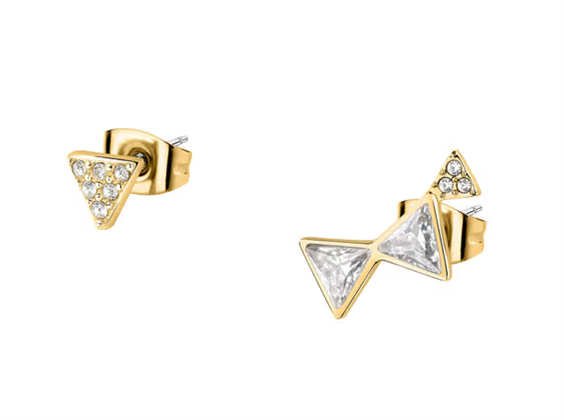 Orecchini Morellato a lobo in acciaio 316L dorato con cristalli bianchi. I due orecchini sono diversi tra loro.