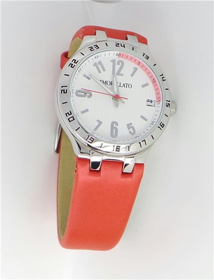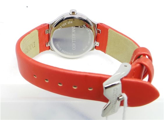 Orologio Morellato con cassa in acciaio e cinturino in pelle rosso. Quadrante bianco.