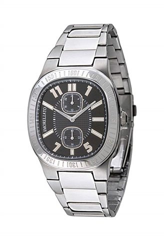 OROLOGIO MORELLATO AL QUARZO COMPLICATO DI FORMA OVALOIDE , QUADRANTE NERO CON LAVORAZIONE CENTRALE E SFERE LUMIBRITE , IMPERMEABILE 5 ATM