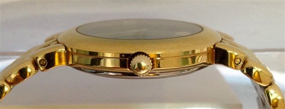 OROLOGIO NUOVO ORIGINALE MOVADO ANNI 90.CASSA IN ACCIAIO PLACCATO ORO GIALLO. BRACCIALE IN ACCIAIO PLACCATO ORO GIALLO CON CHIUSURA DEPLOYANTE. QUADRANTE NERO. GARANZIA DEL VENDITORE