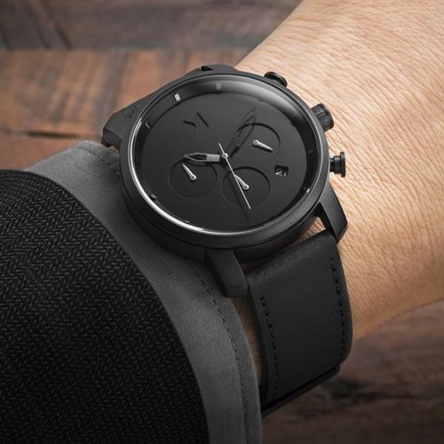 OROLOGIO MVMT DALLA COLLEZIONE CRONO 40.REALIZZATO IN ACCIAIO GUNMETAL CON FUNZIONE CRONOGRAFO E DATA,MOVIMENTO MIYOTA QUARTZ CINTURINO IN PELLE CON CHIUSURA AD ARDIGLIONE