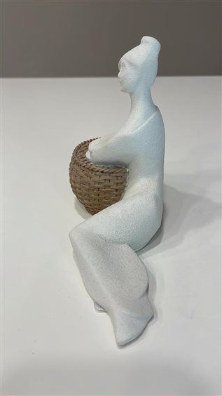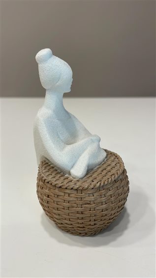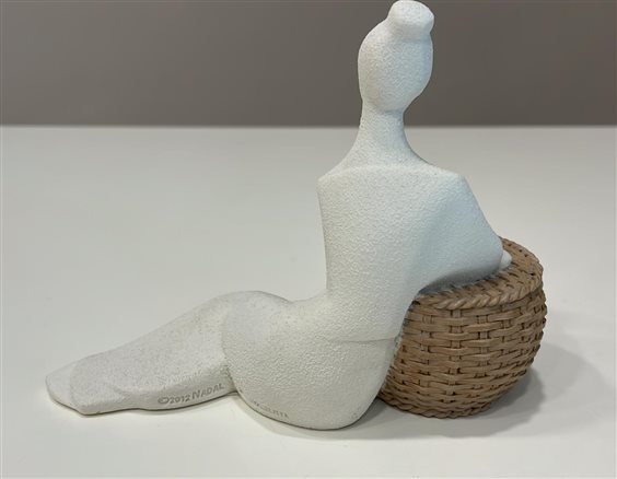 Sirena Nadal appoggiata su un cesto. serie numerata 0507. Statuina realizzata in polvere di marmo. Certifichiamo che questa figura, fatta a mano, fa parte di un'edizione limitata, numerata e che ha superato un rigoroso controllo di qualità nelle installazioni de La Eliana (Valencia), Spagna. Tutte le figure di NADAL Studio sono registrate a livello nazionale e internazionale.