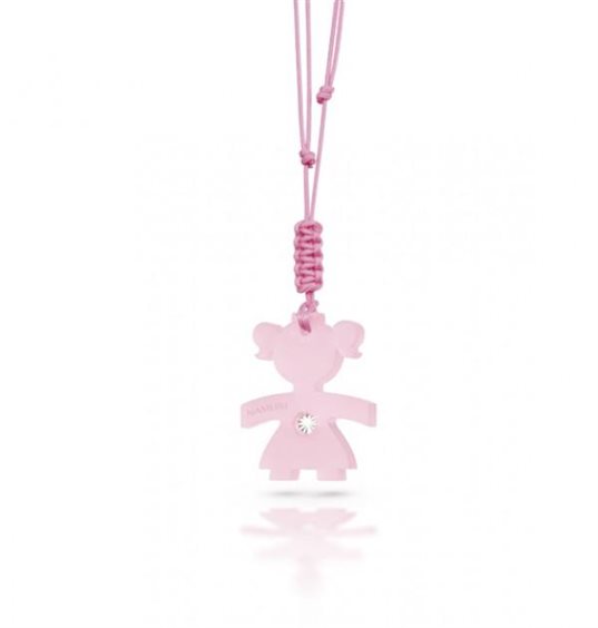 Ciondolo “Bimba” Rosa con Diamante incastonato, un regalo prezioso per custodire i primi istanti di vita del bambino, momenti che ogni mamma terrà per sempre nel suo cuore. La confezione contiene: un Ciondolo con Diamante, un Medaglione da culla, una Cornice portafoto.