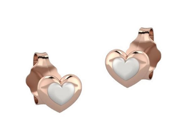 Orecchino cuore rosa Coppia di orecchini a cuore placcati in oro rosa con un dolce cuoricino smaltato in bianco