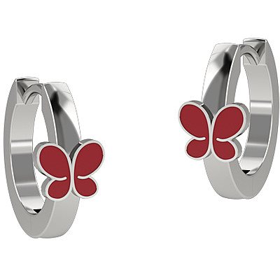 Orecchini Da Donna E Bambina Di Nanan Della Collezione Nanàn Bijou. Orecchini In Argento 925 A Forma Di Cerchio Farfalla Rossa E Chiusura A Incastro. La Referenza È Nan0155.