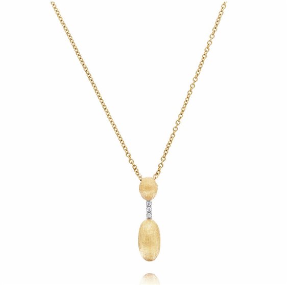 La delicatezza dell'eleganza incontra il talento in questa collana luminosa che ai diamanti sposa due boules in oro 18 kt incise a mano dai nostri artigiani. Ref. CS10-589 Lunghezza 42,50 cm DIAMANTI: - Peso (totale): 0.01 CT - Purezza: VS - Colore: G - Taglio: brillante rotondo Scegliamo le nostre pietre preziose una ad una, e realizziamo a mano ogni nostro pezzo: per questa ragione, le caratteristiche sopra elencate potrebbero variare leggermente.