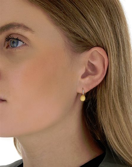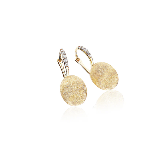 Raffinati orecchini in oro 18kt coronati da eleganti dettagli in diamanti. La sofisticata lavorazione in oro gioca con la luce, riflettendola suggestivamente, e suggellando l'incontro tra la Natura e l'artigianalità. Misura orecchino: 6 x 16,5 mm Ref. OS41-583 DIAMANTI: - Peso (totale): 0.04 CT - Purezza: VS - Colore: G - Taglio: brillante rotondo